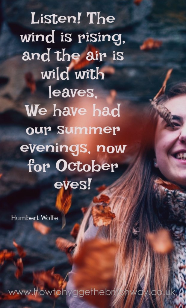 Besides which, don’t the autumn colours and the changing seasons exert a magic over you that mean it lifts your heart? The sight of acorns and conkers, changing leaves, piles of drifted leaves to kick through, the keen smell of smoke on the air, the breath that mists as you walk in early morning…. there are so many things outside to be thankful for, time spent away from the TV, table or workdesk is time well-spent.