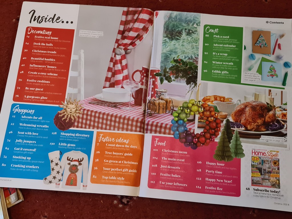 The three magazines I chose to compare are Homestyle Christmas, £3.99; Your Home Christmas Made Easy £3.99 and Ideal Home’s Complete Guide to Christmas £4.99. They’re all available currently in UK supermarkets.