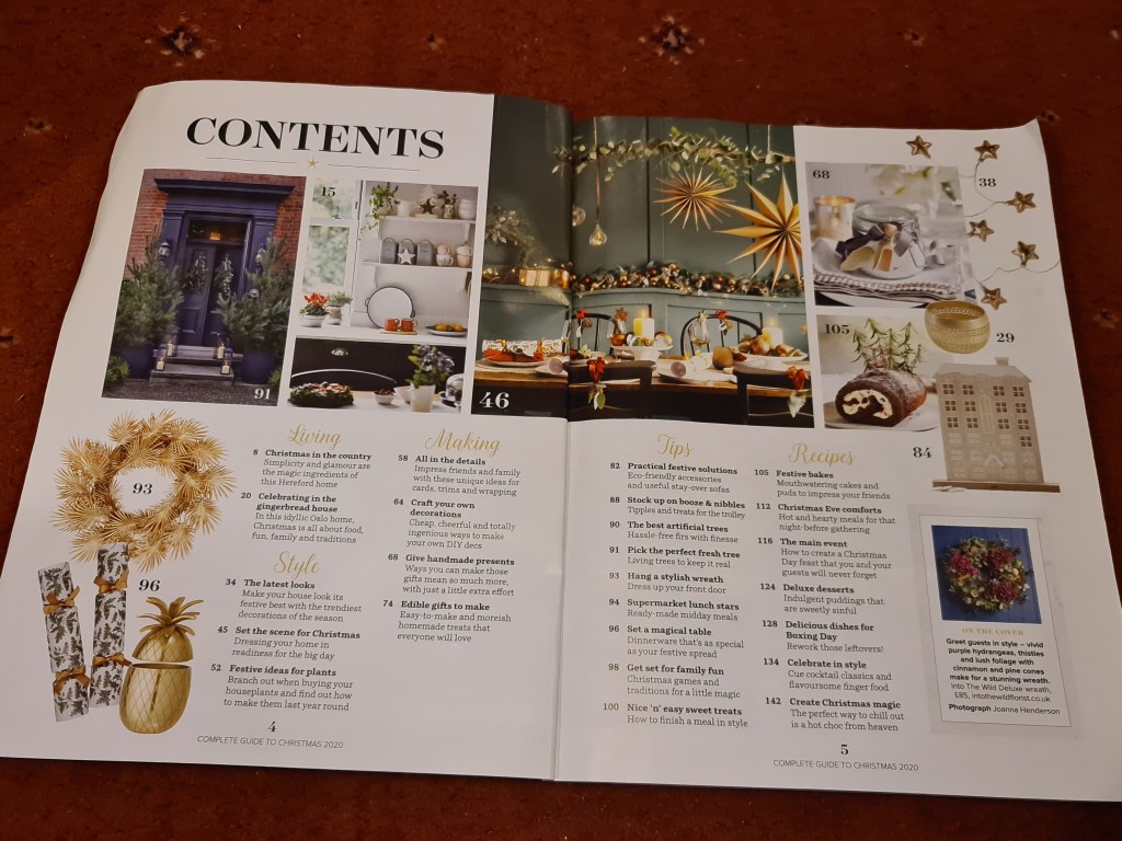 Ideal Home’s Complete Guide to Christmas this year is very stylish, with a purple wreath as centre stage. It’s a classy magazine all through, with glossy paper rather than the eco-aware matt paper of the other two.