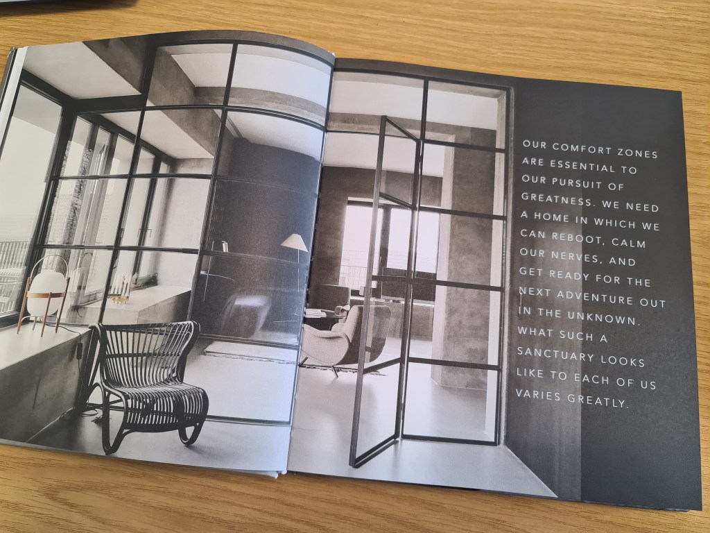 Simple Matters is subtitled ‘A Scandinavian’s Approach to Work, Home and Style.’ It’s a proper coffee table book for the insta generation, elegant in colour palette (the most colourful thing about the book is the little red bird logo for Gibbs Smith the publisher) and filled with minimalist, monochromatic photographs. It’s beautifully designed, with text set out simply and plenty of clear space as well as loads of photographs on whole pages or set into the text.