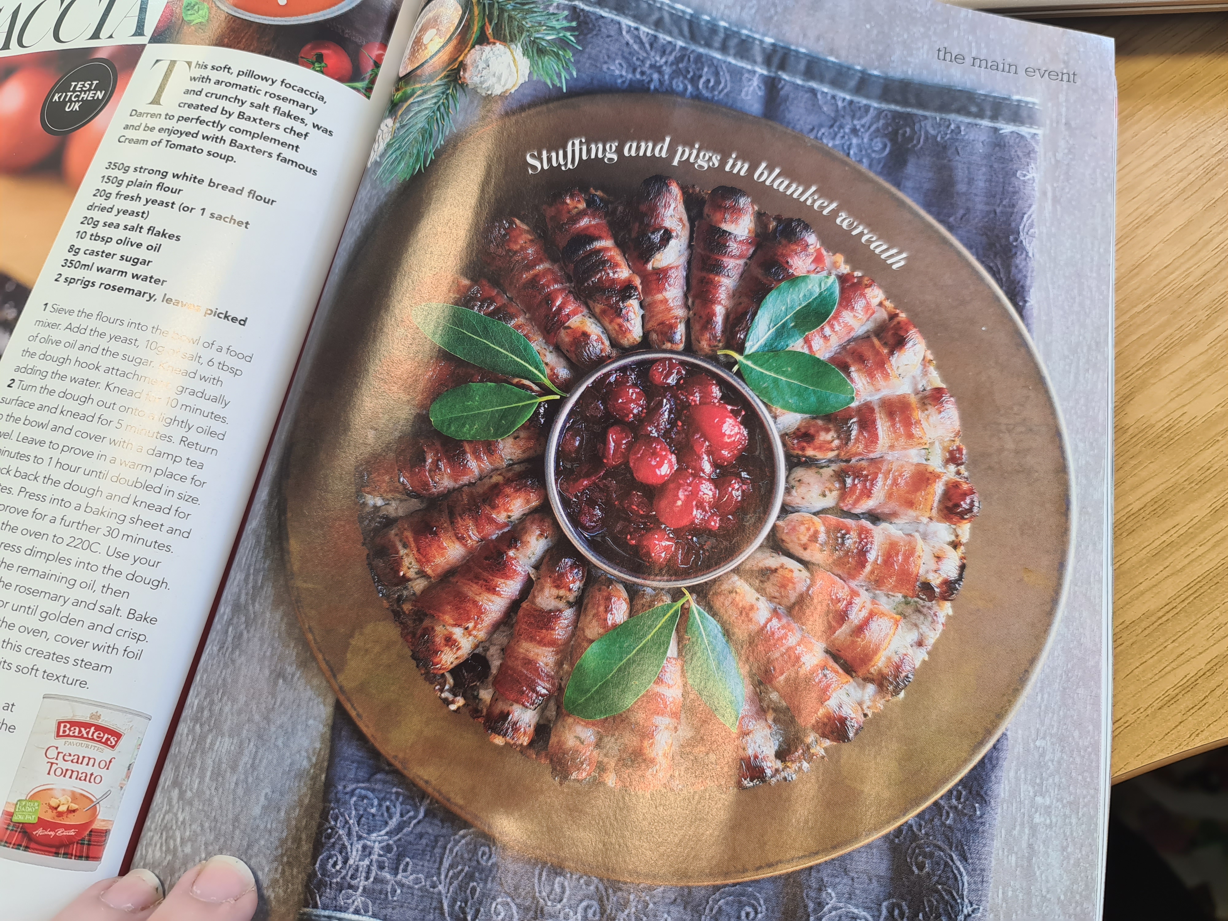 There are always plenty of pages on food, cookery and baking in W&H Christmas edition, and this year is no exception. I do wonder, sometimes, how many ways to cook a turkey there actually are, but in truth it’s the small side ideas that you get that really make the difference. This year I’m keen to try sprouts and chorizo (I am the only person who will eat sprouts, so I can do what I like to them) while the stuffing and pigs in blanket wreath looks like a fun make to add a little extra smile to Christmas Day.