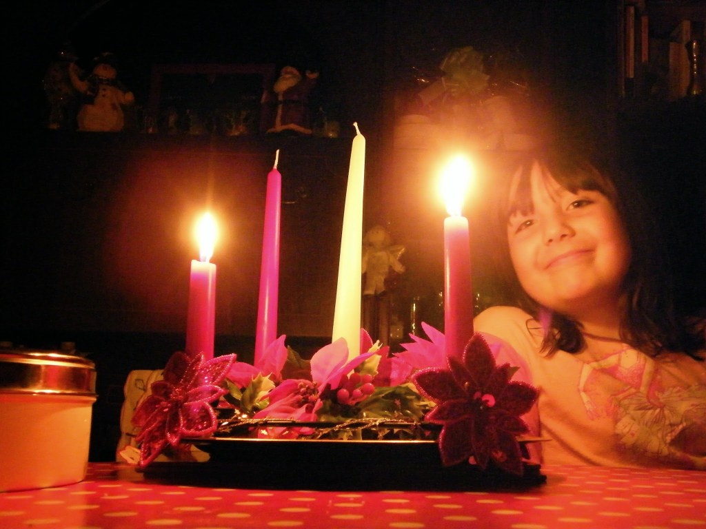 I chose the purple and pink that year, as I have done other years since, because I liked the significance of the pink candle. In Catholic traditions the four Sundays of Advent all represent different aspects of the Christmas story, the biblical story or simply expressions of emotions. Over the years I’ve explained (very simply, when my children were in the early years) what each candle stood for: The Prophets, the Patriarchs, Mary, John the Baptist in one version, while the candles stood for Faith, Hope, Love and Repentance in another. In my own advent journey this year, they stand for Hope, Love, Joy and Peace. Four qualities I think we need as a world at the moment. The pink candle stands for Joy, on the third Sunday, and we’ll talk about that next week.