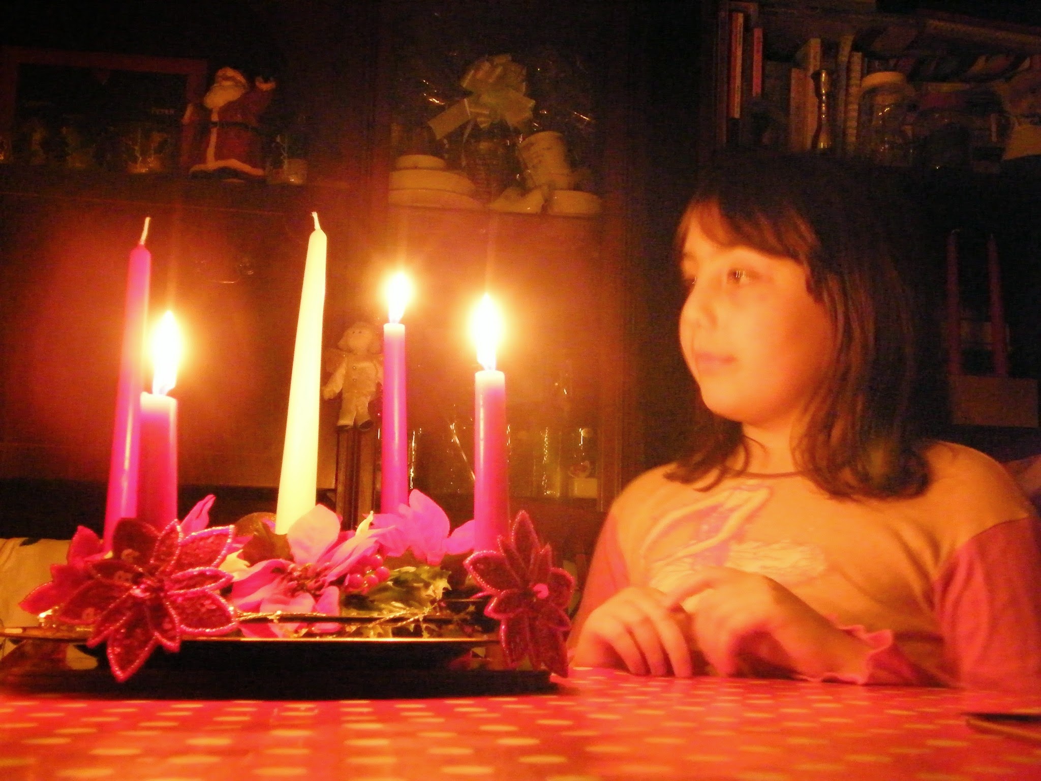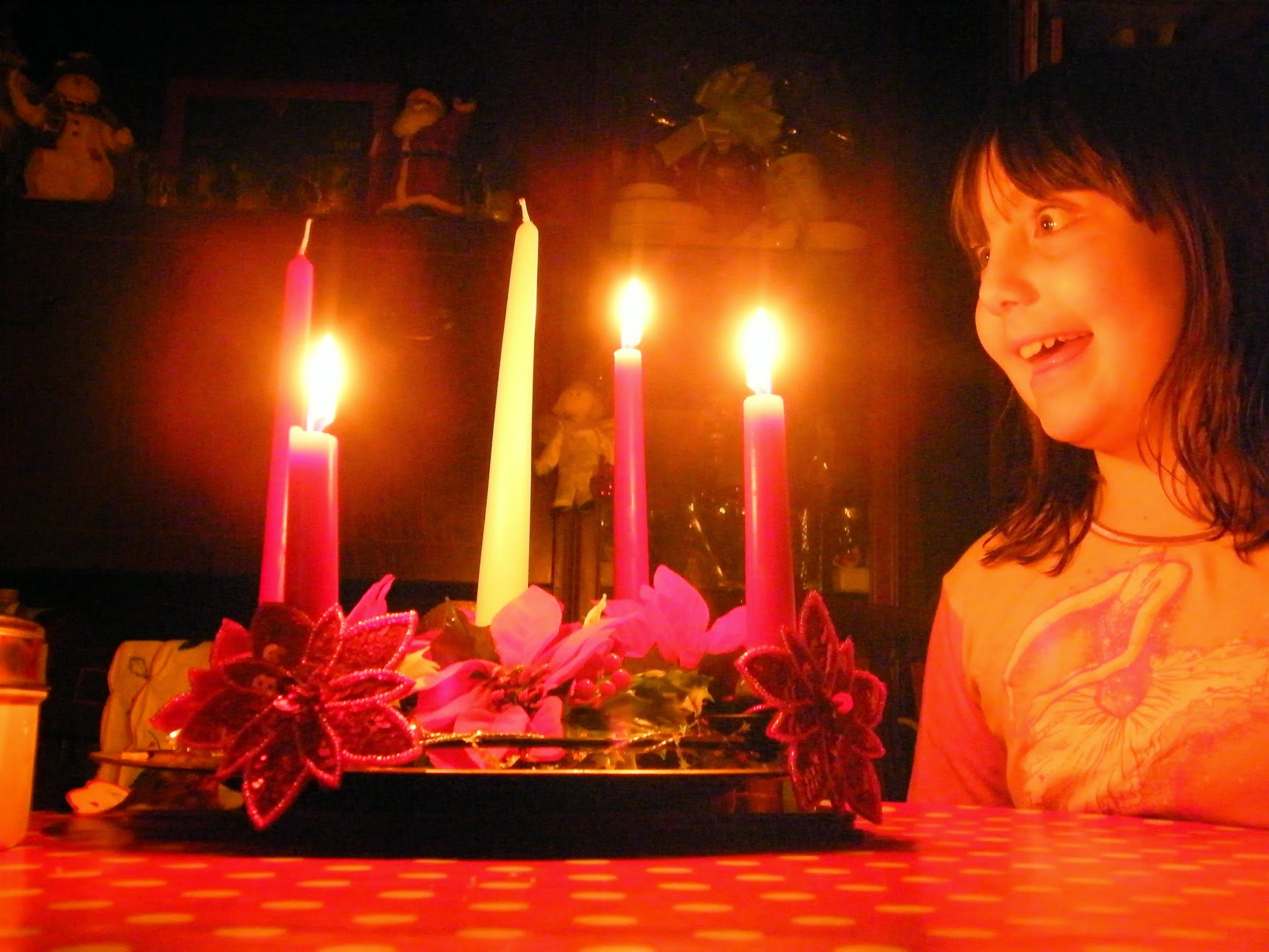 I’d never had an advent wreath before, only seen them in school and Church but, mindful that my little burden would be a baby proper the next year, it struck me then that the adoption of new Christmas traditions that suited both Mr Hygge Jem, myself and our growing family was now up to me, and that a very visible, tangible sign of time passing might well be a good idea, especially once the advent chocolate for the day was eaten. The wreath, and a set of six candles, came home with me that day. Six candles, because there were four purple ones, one pink one and a white one. There are alternative arrangements of candles for advent wreaths, from five red or purple and one white one, all purple or all red ones to all white candles.