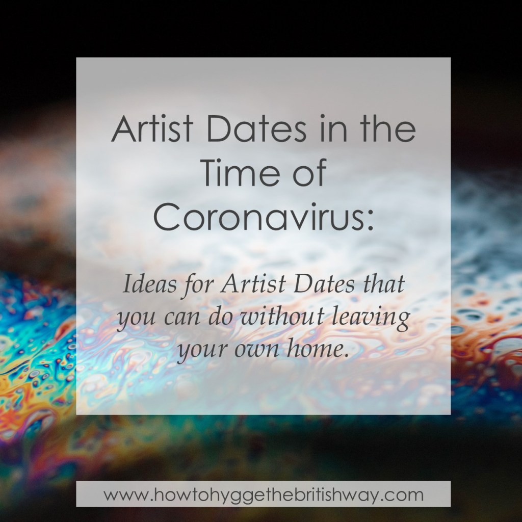 Forty Artist Date Ideas by Katie from Find the Good Everyday: Katie wrote these in 2017, so they’re not designed specifically because of the Coronavirus, but so many of them will work depsite Lockdown. Truthfully, I love the list and may well be using a few myself. And, to make life even more perfect, Katie has a list of Twenty Cosy Artist Dates that are perfectly hygge and so good for hibernating in the winter time! (I’ve ended up following Katie on every social media she does: one can never have too much positivity in one’s life)