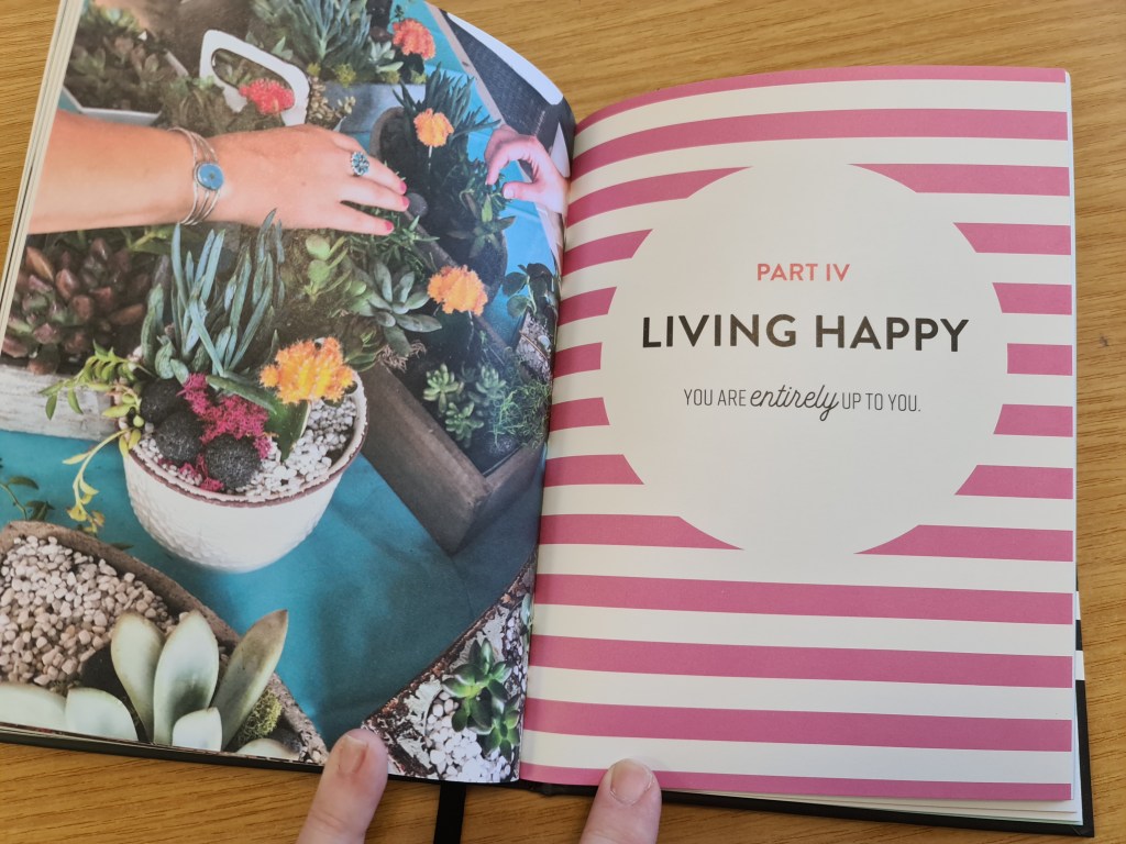 The final part, Living Happy is about the daily actions we can do to keep happy. Setting boundaries, saying no, living in the moment, celebrating success and keeping track of achievements. Stephanie sets out ideas that we may (or may not) want to do, but the fundamental ethos behind them all is to enjoy life, to be present in life, to live for experiences and people, not things.