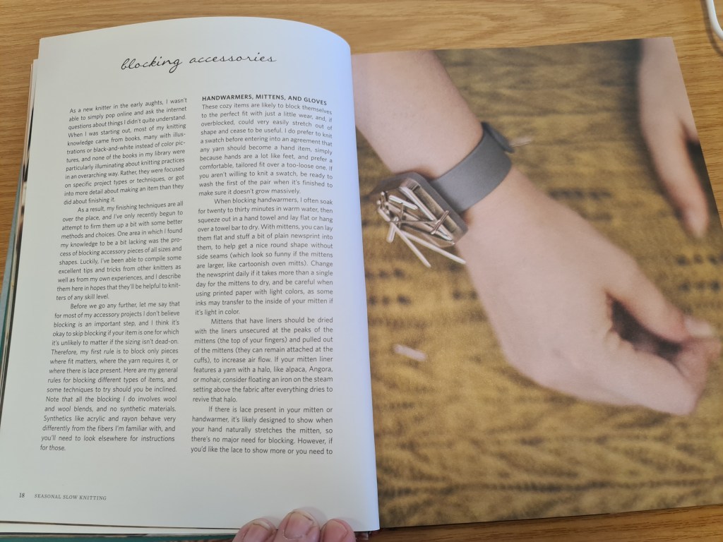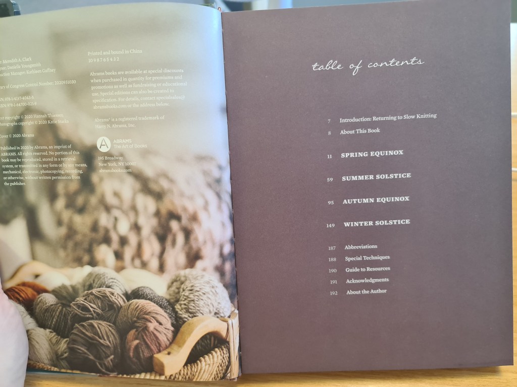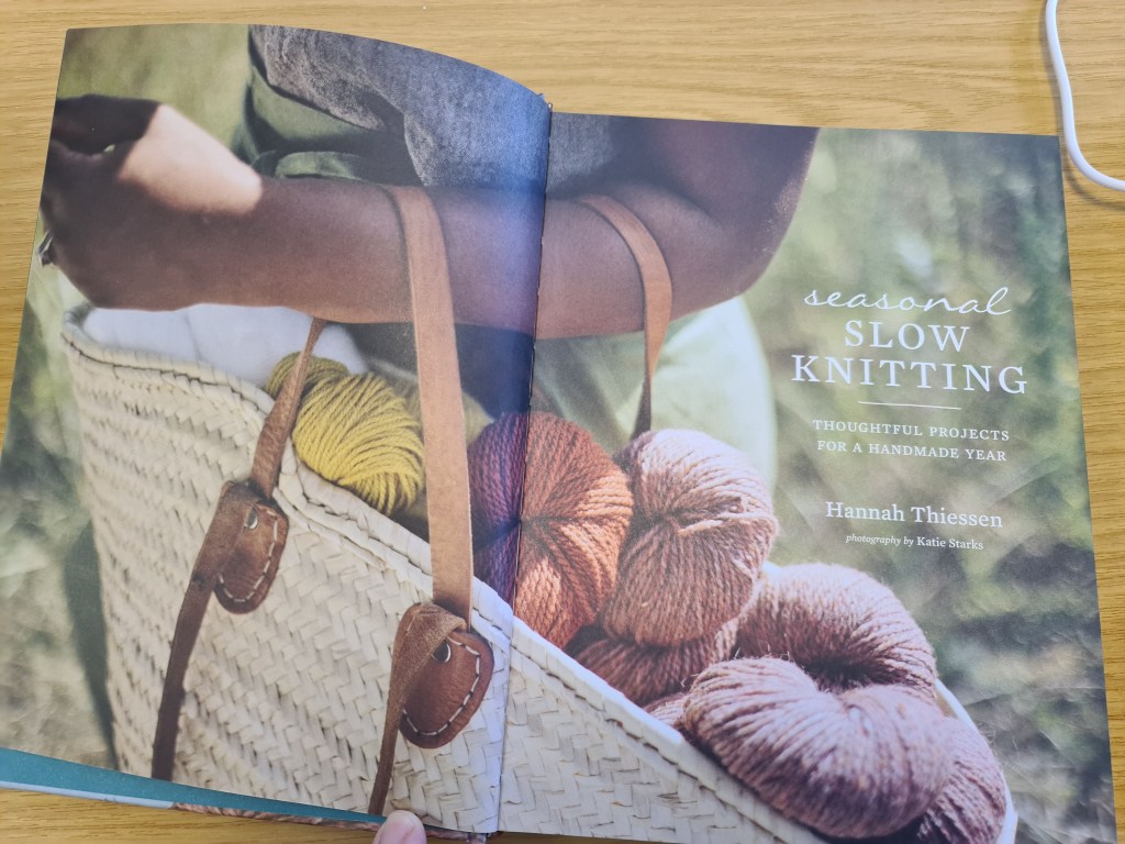 Second Disclaimer here, too: I didn’t realise that Hannah Thiessen had a first book out called, simply, Slow Knitting, which I do not currently possess. Having read this one (the colours drew me in) I may well go and find the first book at a later date. I hope it’s also not just about knitting.
