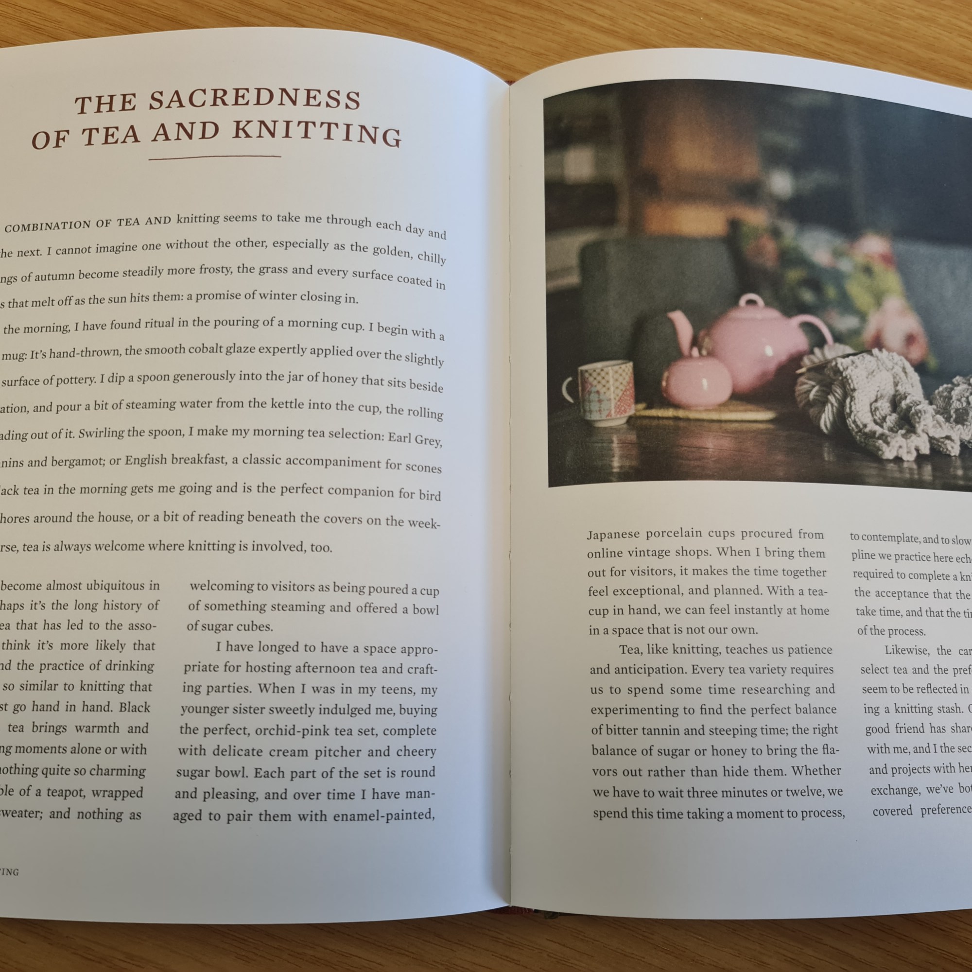 But the essays that speak most to me (perhaps unsurprisingly) are those that speak to comfort, cosiness and the quiet pleasures of time spent well at home. I love the essay on the scent of knitting (including rare praise of lanolin) and that on building a slow wardrobe, the mindful acquisition of garments that have taken time to make and will take time to wear out.