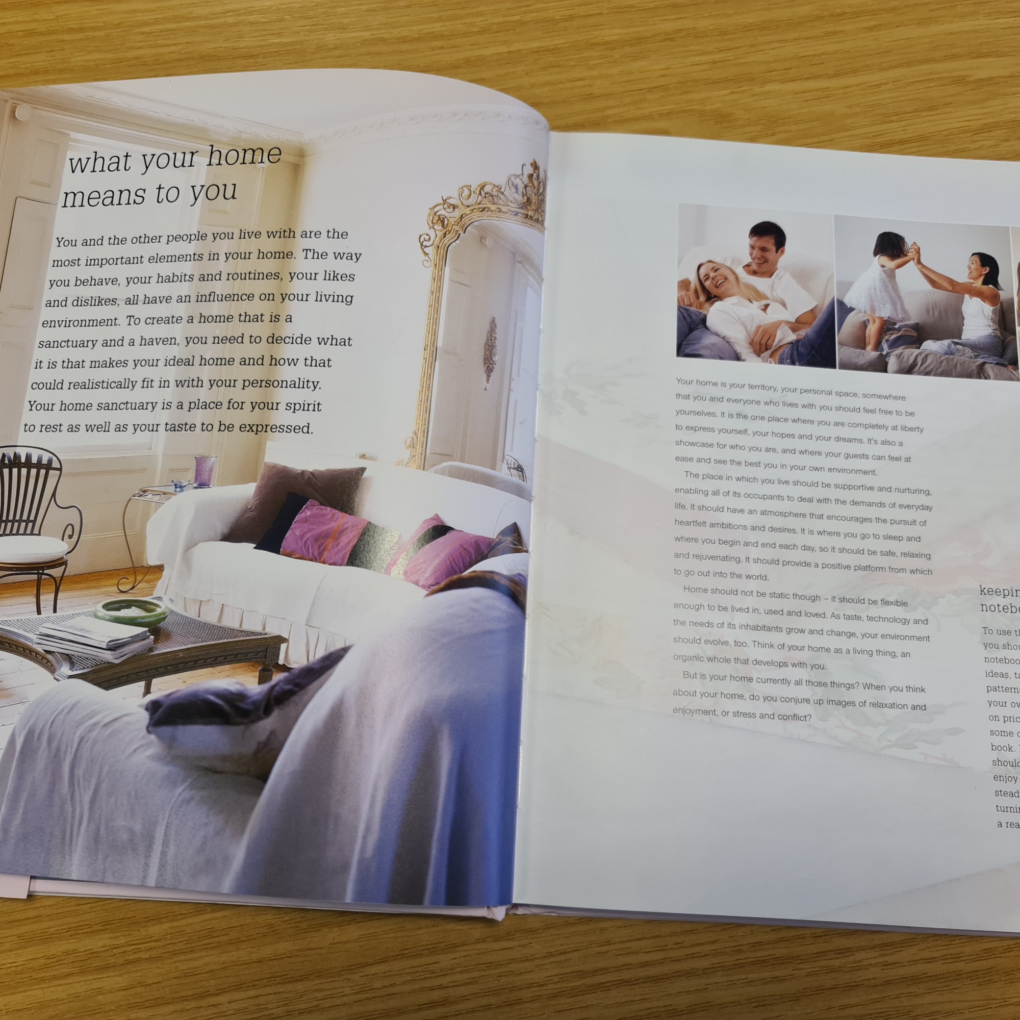 The book recommends having a notebook to make notes in about your home, what you hope to get from it, ideas to improve it and semi-journal entries seeking out what it means to you now and what you want it to mean in future. There are quite a few lists of questions, especially in the first chapter, that are worth asking and answering.