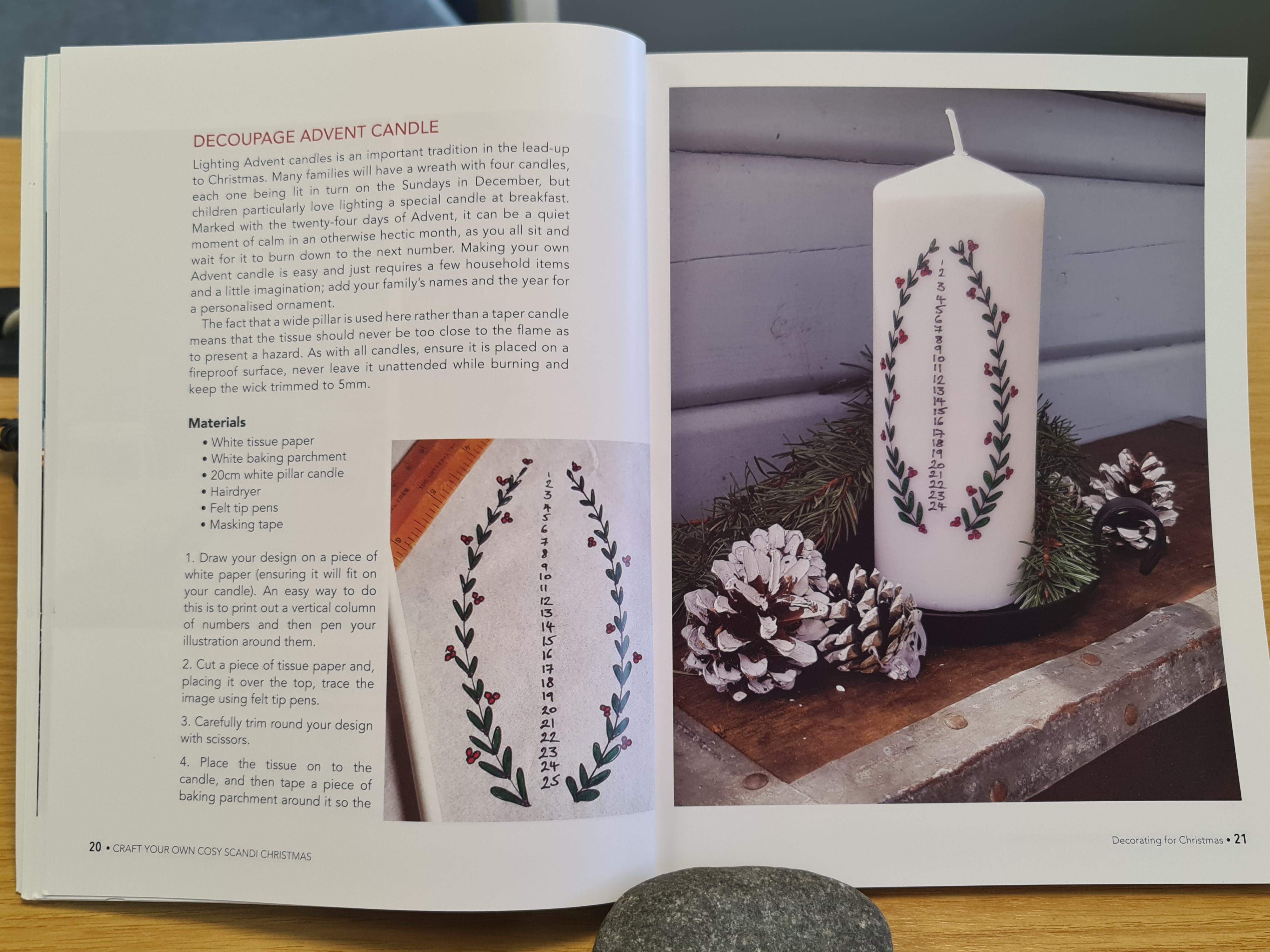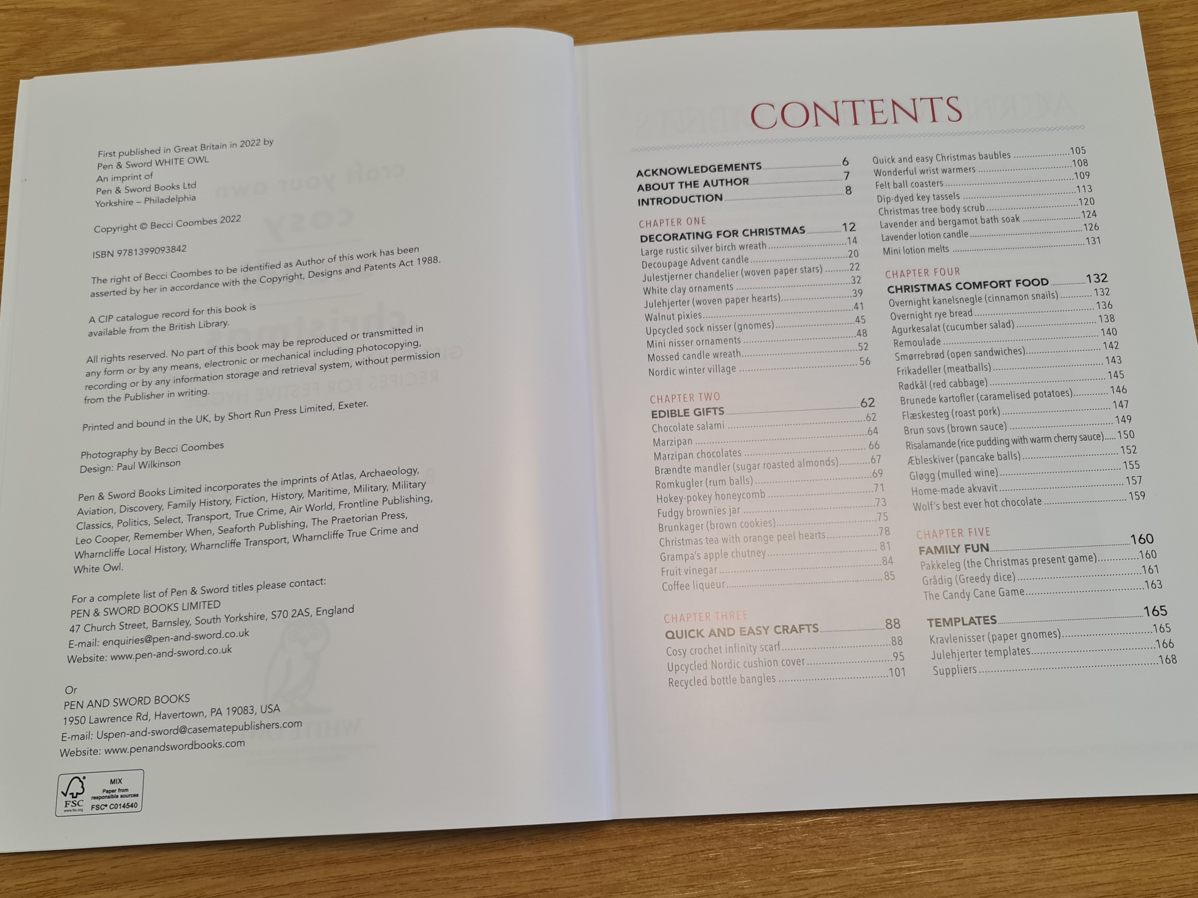 Cosy Scandi Christmas is a 9 by 11 inch paperback of 168 pages. It has full colour photographs throughout which have all been taken by Becci and have an attractive red-white-natural-scandi feel about them. The book is divided into five chapters: Decorating for Christmas; Edible Gifts; Quick and Easy Crafts; Christmas Comfort Food; and Family Fun. All self-explanatory, I think.