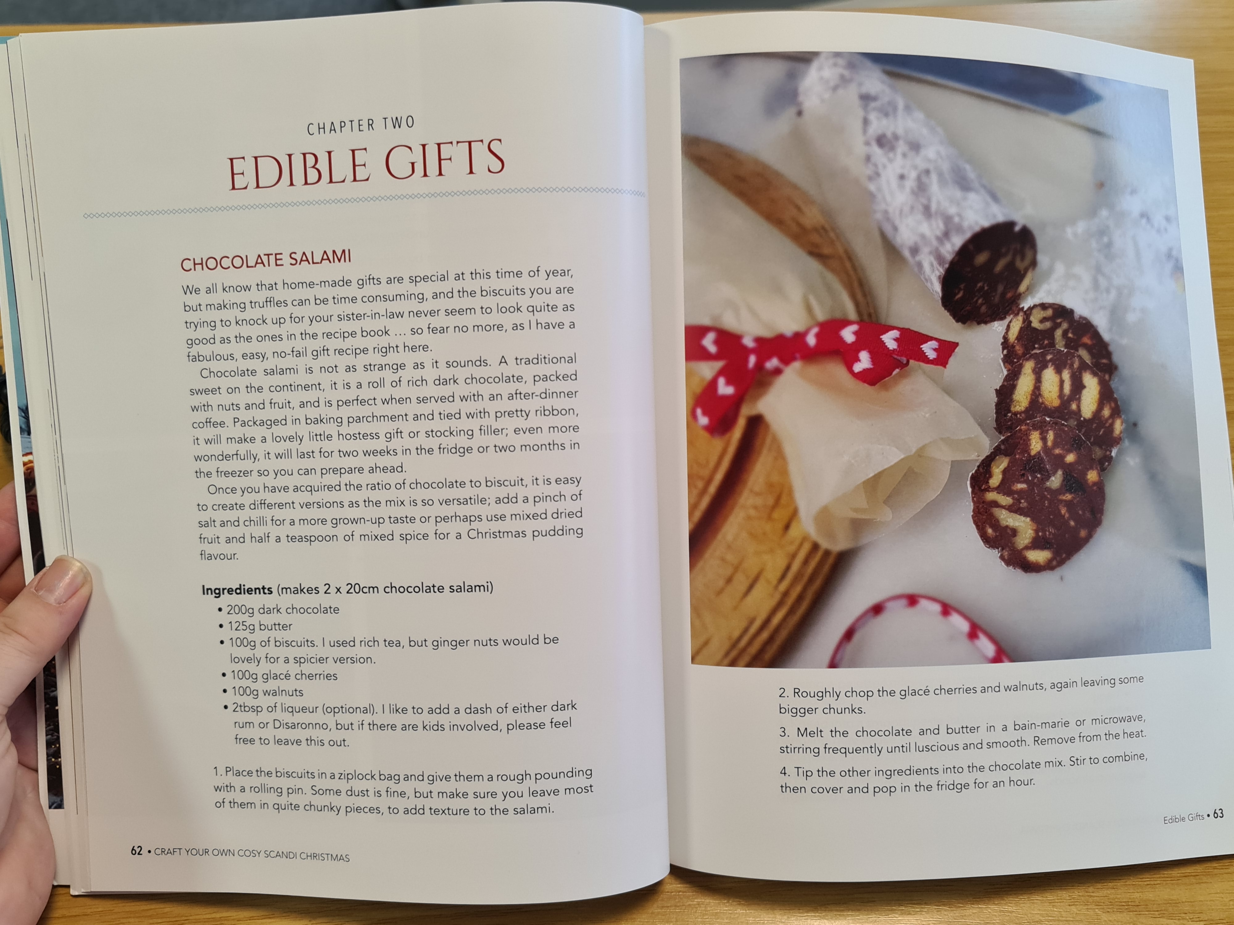 With the possible exception of the paper bows for the Christmas chandelier, none of the crafts need Master Craftsman levels of ability, and even with the bows or paper stars the photographs explaining how to do it are well set out and clear. The recipes also have clear ingredients and step by step methods.