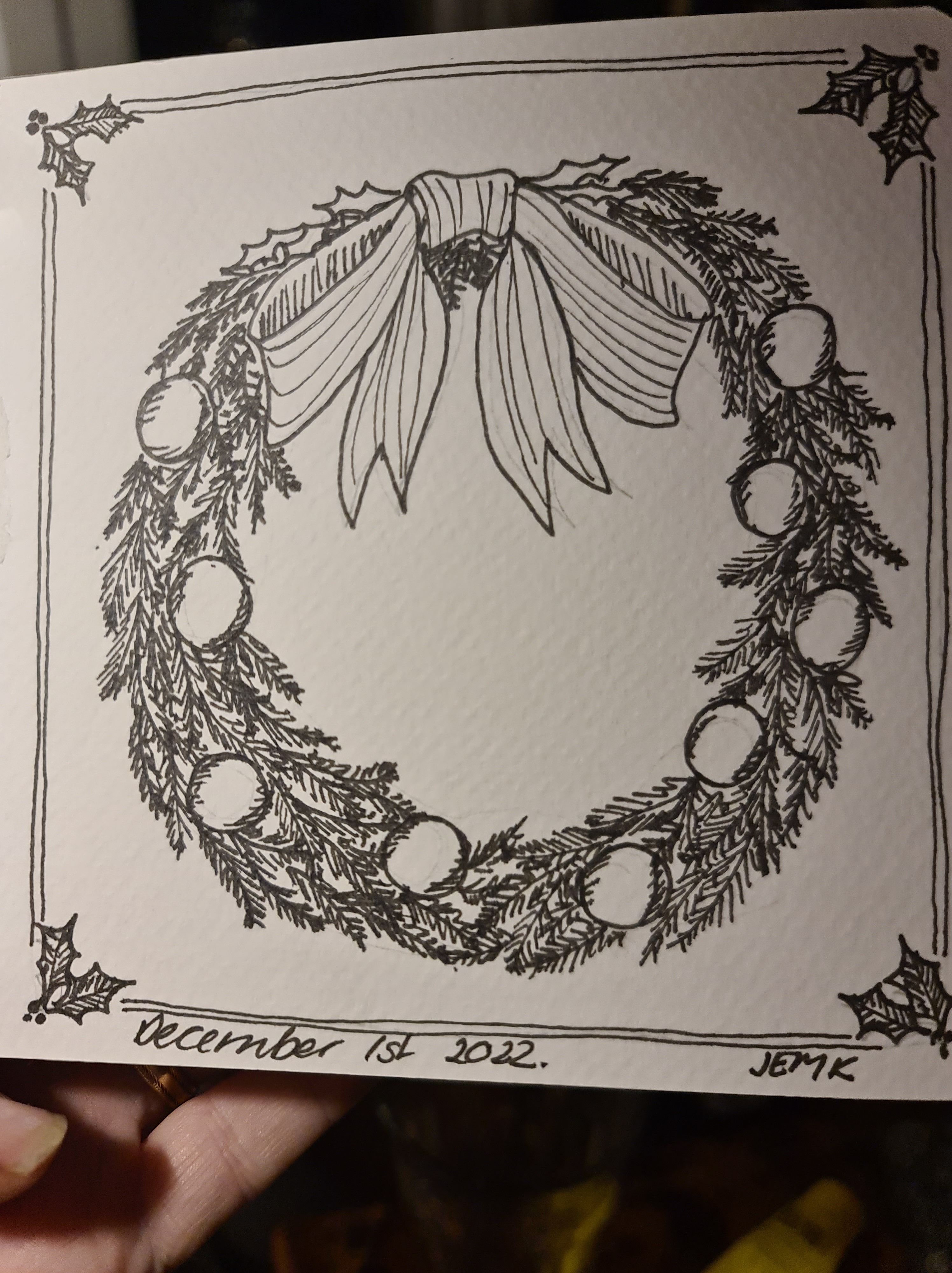 Part of my Advent preparations this year is a Doodle a Day. Today’s was, of course, a wreath.