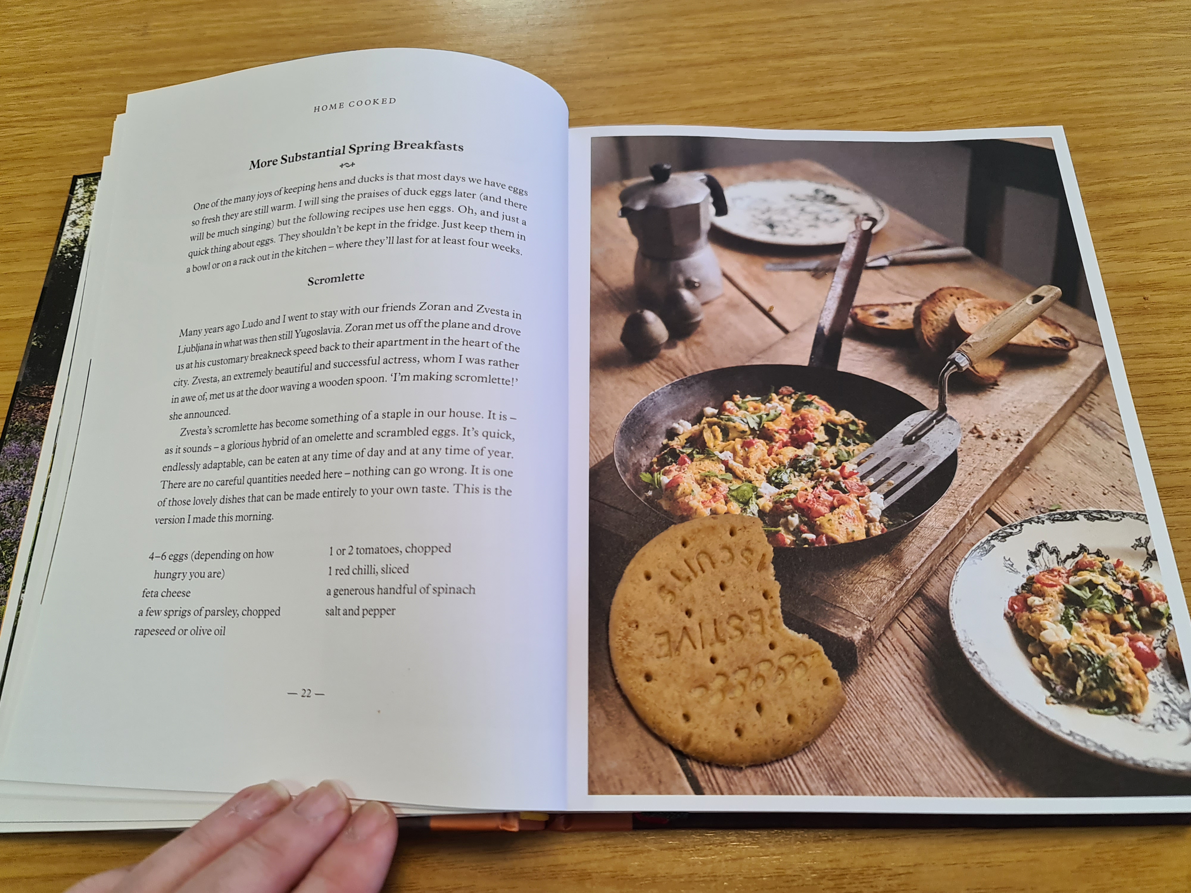 It’s true the recipes in the book are good, steady, solid fare. There’s no pretention here, and very little faffing. What there is is a solid emphasis on seasonality, on fresh food and storing some goodies for later. I like that the recipes all link back to Kate and her life. There are loads of egg recipes, simply because anyone who has kept hens or ducks needs egg recipes and very welcoming neighbours to clear the glut.