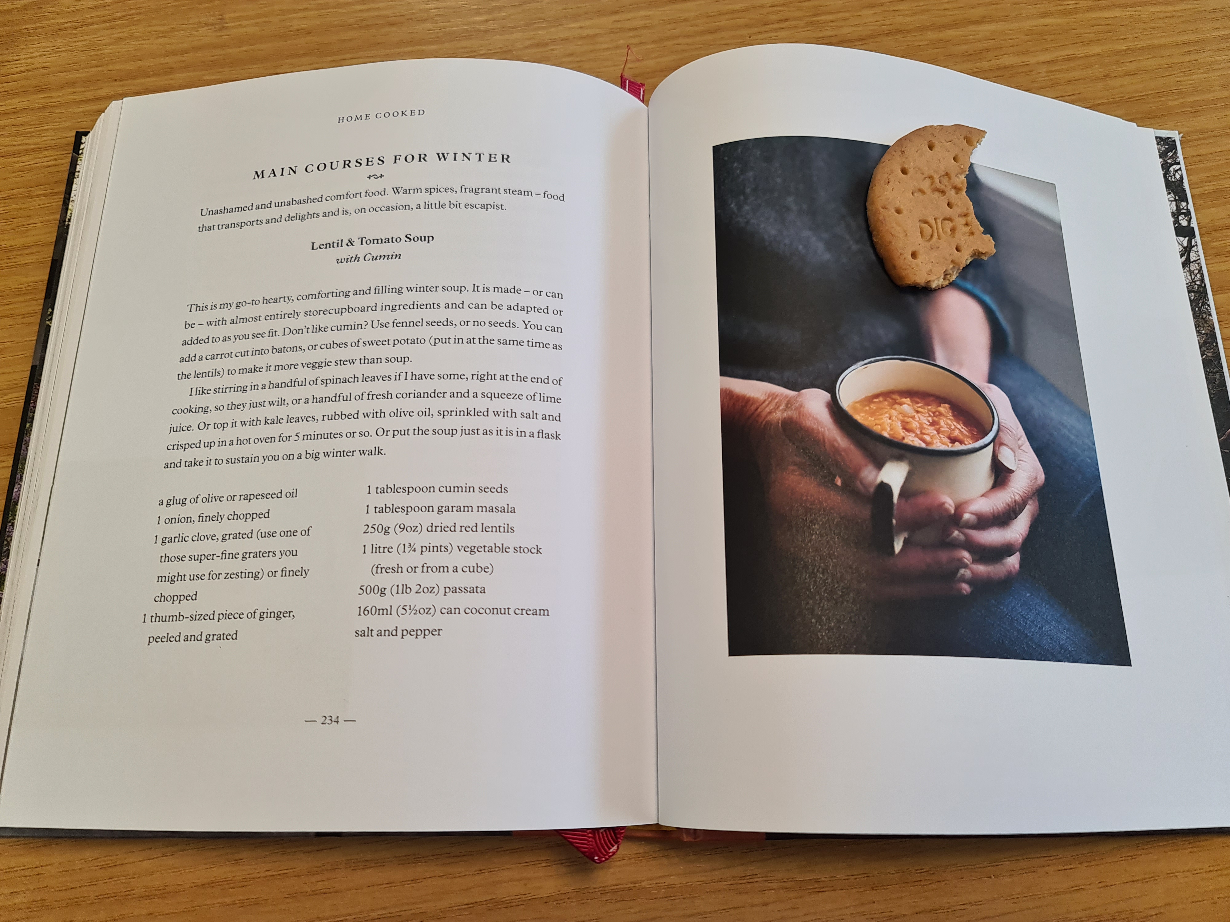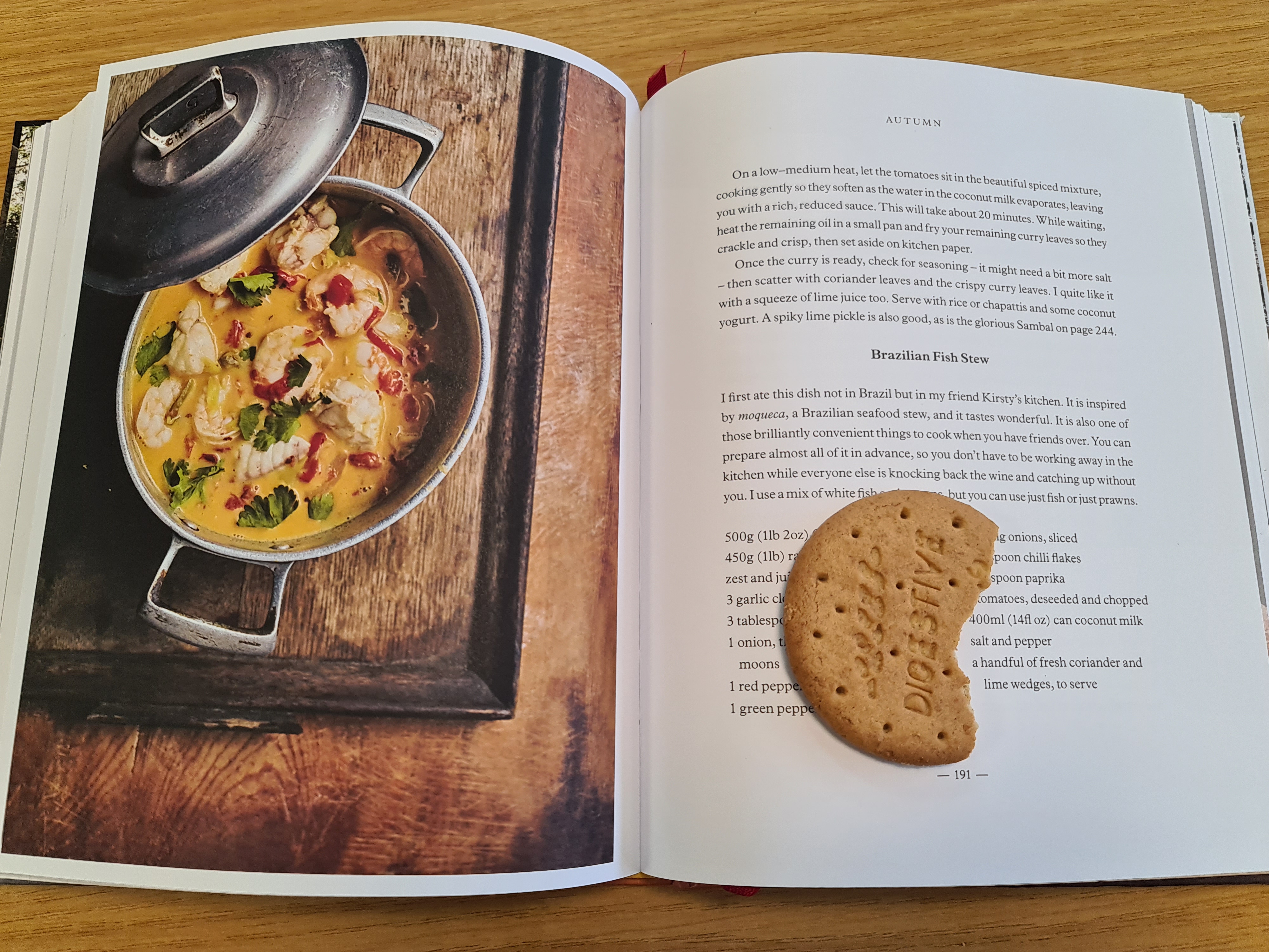 I’ve read the book through at least twice, but again (like so many of the books I love) this is one to dip into, to keep by the bed or in the comfort basket and just flip through until a picture catches your eye. Or just open at random and read the next recipe. I’ve copied out the most popular ones in my house, which is my habit with a good recipe book, so that frees me up to keep it for cosy reading by the fire, or flicking through last thing at night when a novel is too much but I need to feel grounded. It’s a good book, one I have really enjoyed. And, as usual, I leave you with the flipthrough.