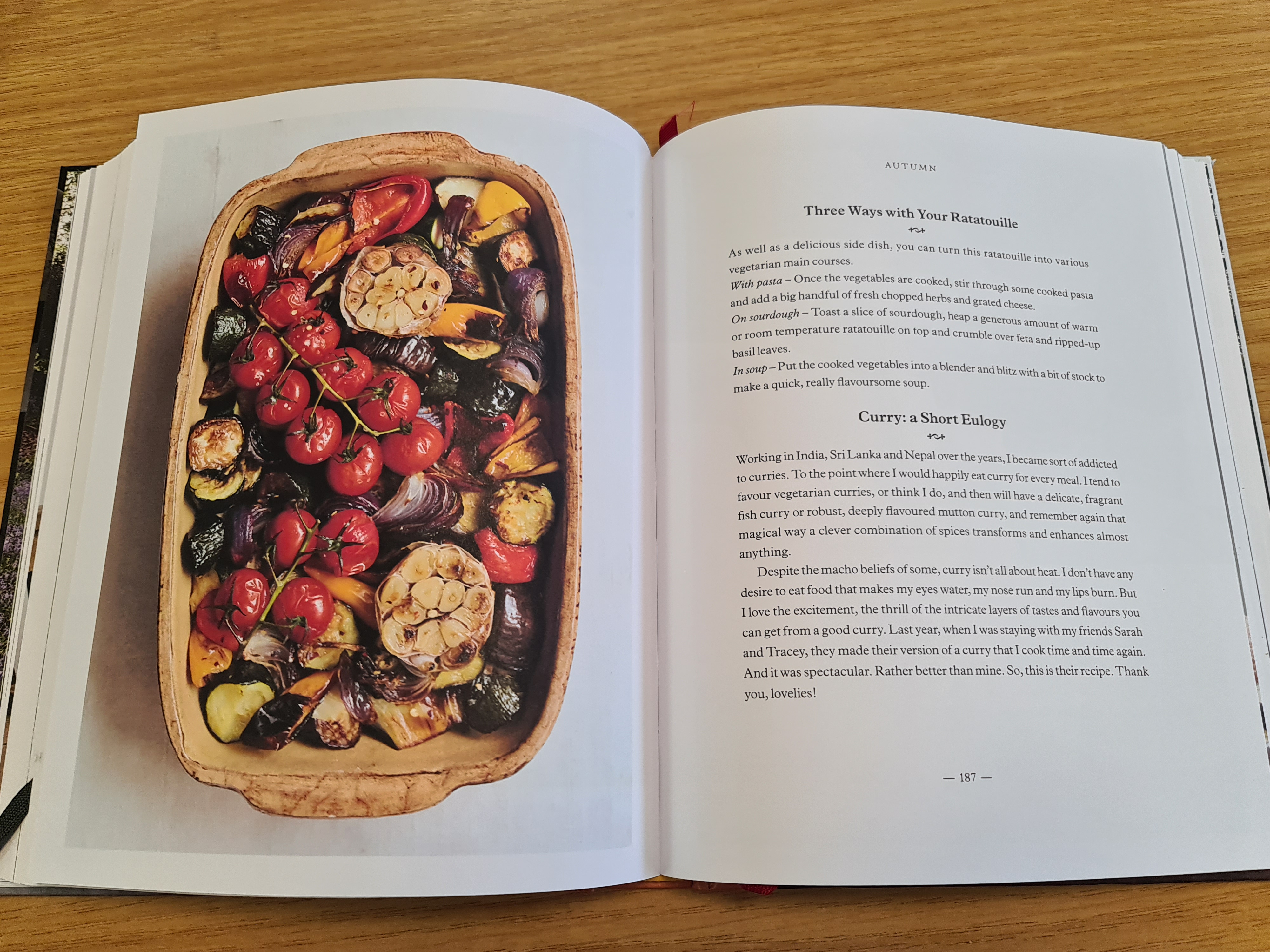 Sometimes I buy a cookbook and try a few recipes before putting it to one side as a nice but unnecessary idea because so many of the recipes would be expensive to make, using cuts of meat that you just can’t justify for anything but the best. That’s not the case here. So many of Kate’s recipes are created using ingredients from the garden. I am almost inspired to plant tomatoes again, to give courgettes a go (no: there’s only me who likes them) or to find a patch of wild garlic to forage from. I probably won’t: fulltime work doesn’t have much wiggleroom, but I can live vicariously through Kate.