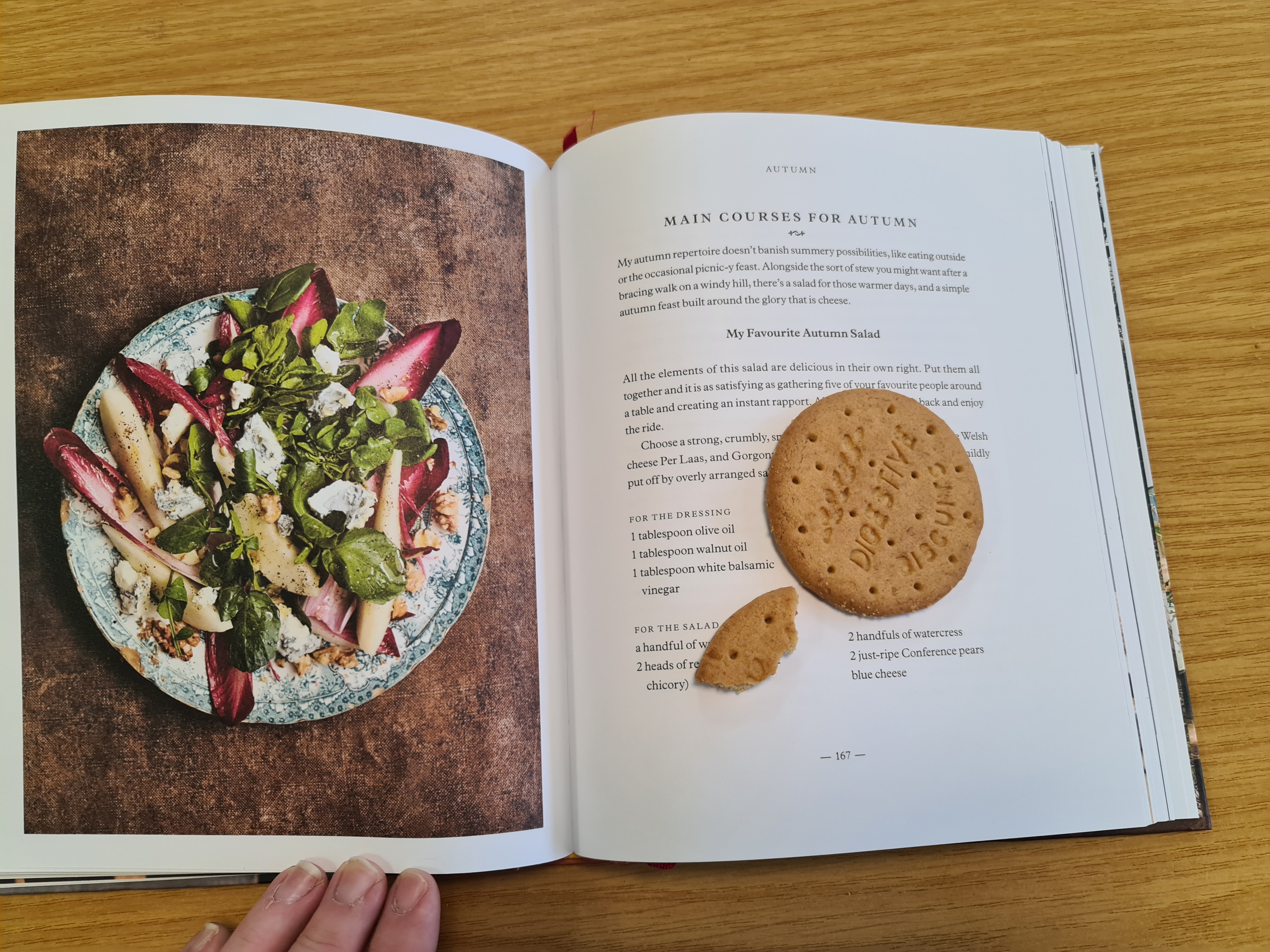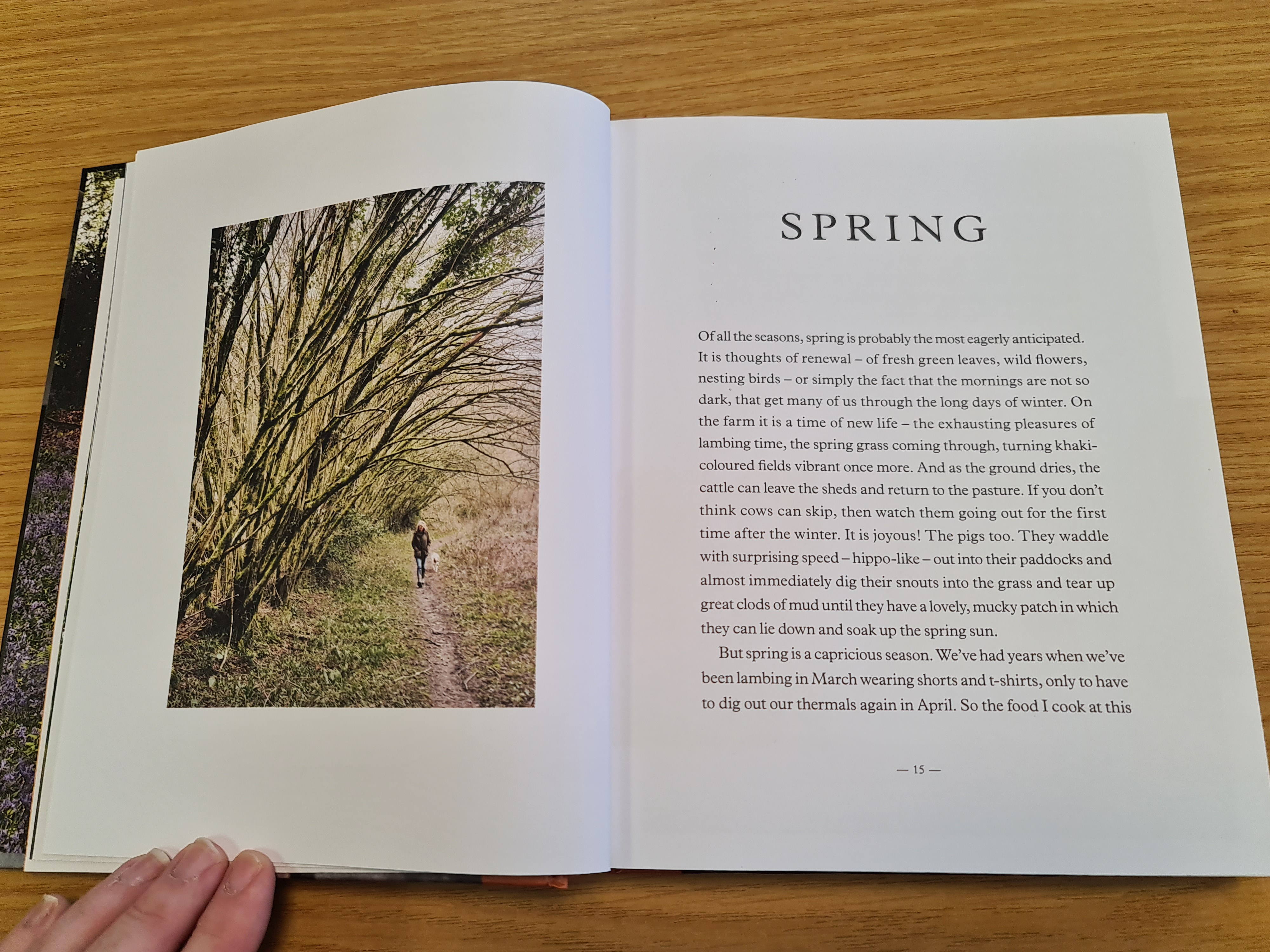 And the sections… here I am, arse above tip, telling you there are sections without explaining how the book runs. That seasonality… the whole book is split into four section by season, and starting with Spring. Each season starts with a short introduction about what makes it special for Kate, what is happening on the farm and which style of eating and cooking suit each season. For Summer Kate writes that “You can go to the fanciest restaurant in the world, but I promise you after an afternoon of loading bales onto a trailer, when you are hot and dusty and happily exhausted, nothing beats a picnic sitting on the freshly cut grass, back against a hay bale and dog at your feet.”