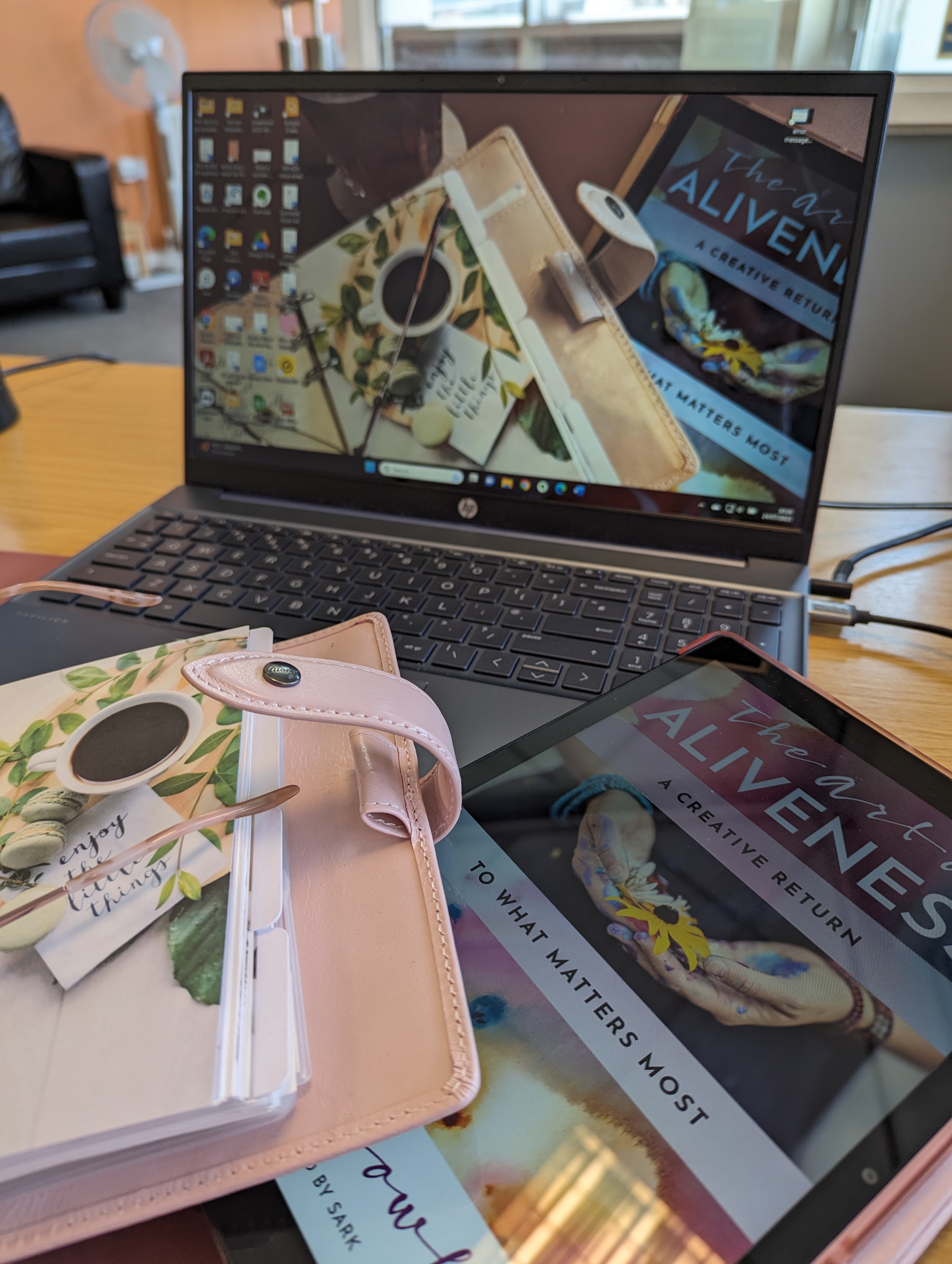 I suppose my final sacred Space is actually the home screen of my work computer or phone. Occasionally in work I feel the need for a headclear. I change the wallpaper on the computer regularly, sometimes to a seasonal picture, sometimes to a special place or holiday shot. At the moment it’s my planner and my reader. A chance to clear my head onto a blank page, reminders to enjoy the little things and inspirational words from people who’ve lived well themselves. The benefit of having a Sacred Space wallpaper is that you always have a breathing place with you, no matter where you are. Chance to reconnect, to ground, to centre oneself and regain equilibrium after the chaos of the outside world, even when you are, physically, right in that maelstrom and will shortly need to step back into real life and assume the Superhero cape.