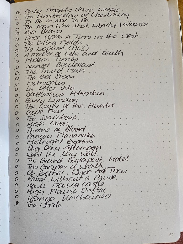 But I know that people will want to know what films are yet to come: I’m typing up a list, slowly, but I do have it written in my planner. I want a typed version to keep in the living room, and to store on my digital planner system (Evernote: I like the idea I can have so many notebooks at once on the go) so I will eventually have the whole list to cut and paste but, for now, here are the photos of the list.