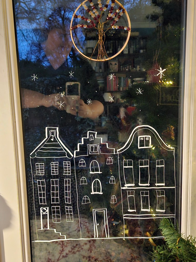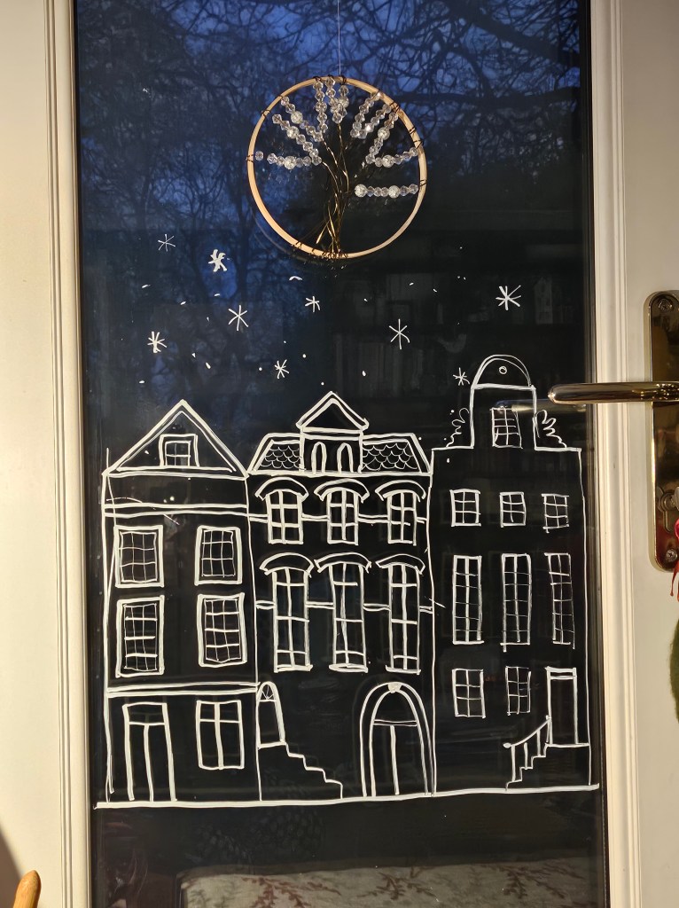 And I decorated my living room windows with chalk pens and houses inspired by Amsterdam. Very gezellig, I hope you agree? Small easy actions, but they all give me an echo of the light I felt in creating them. That warm happy feeling of creation. Bring your own light, let’s enjoy Winter together.