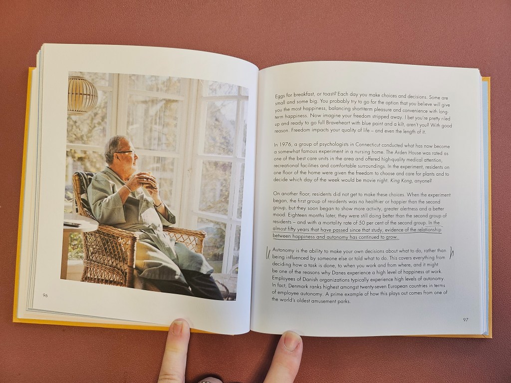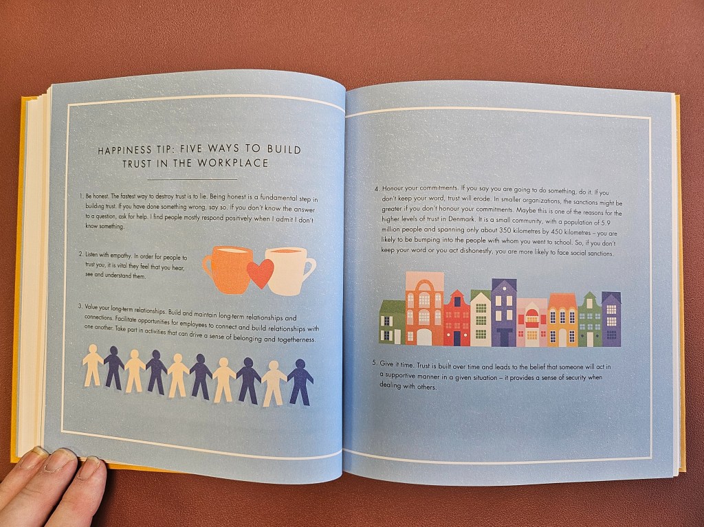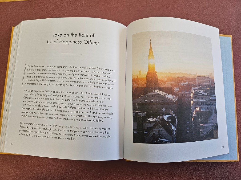 Let me repeat that: the book is written for people who have a job or employment and who want to make sure their job, role or company run with as much happiness as possible. It’s not a cosy living, happy interiors book. It’s about an area that most people would just take as automatically being beyond hygge.