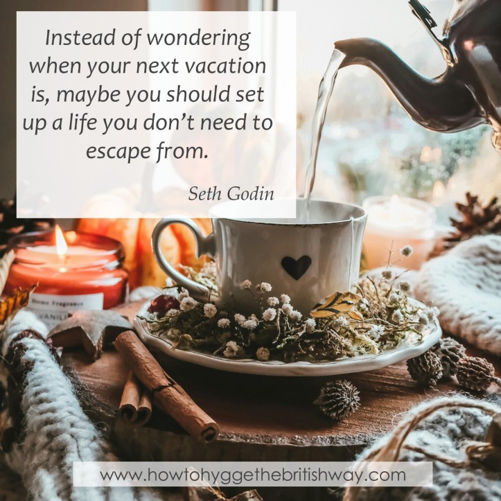 It’s not about escape… although it may be escapist for a while. It’s not about how it looks… although you will want your life to look as good as you can. It’s not about being perfect. It’s about living with the imperfections in a way that lets you enjoy life despite the chaos around you. It sounds, actually, a lot like hygge. Create a nest, craft a life system that supports what you need to do and leaves space for what you want to do. Have cake or biscuits handy, make the pot of tea, use the good china. Take that pause and forget about the outside world.